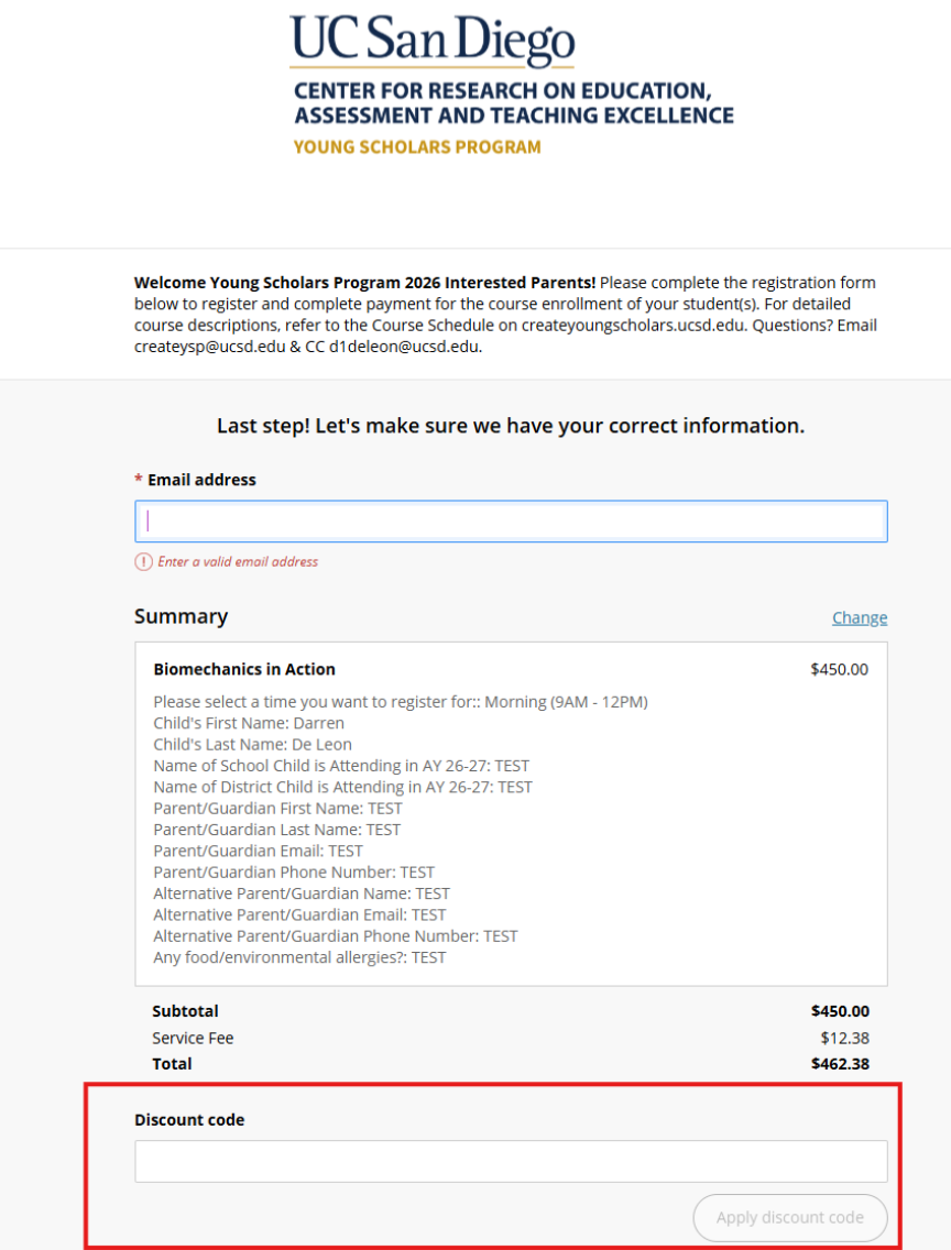 Click on the Register Now button, directly above this! Registration for Young Scholars Program - Summer 2026 is completed through UC San Diego's CASHNET Payment Portal. This is a 3rd party, contracted service made and coordinated by UC San Diego's Financial Services.